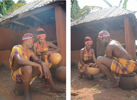 The photos show a man and his woman staging the pre-wedding photoshoot using the rural way of life and bringing back memories of ancient times.