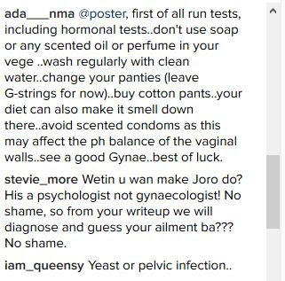 A lady wrote to online relationship adviser and psychologist, Joro Olumofin about the foul smell oozing out of her private part. This has earned her diverse responses including from people who feel she needs a doctor and not a psychologist for her problem.